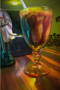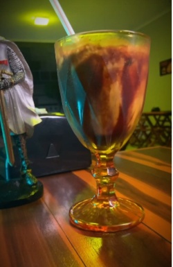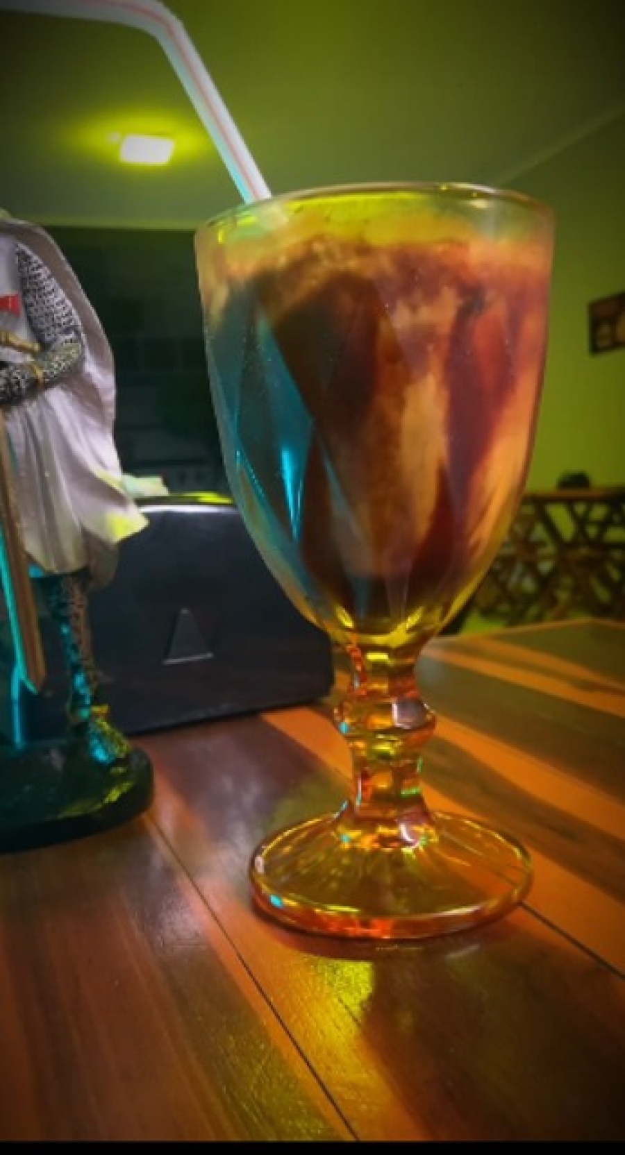 SORVETE DE CHOCOLATE,LEITE,CALDA DE CHOCOLATE,OVOMALTINE.