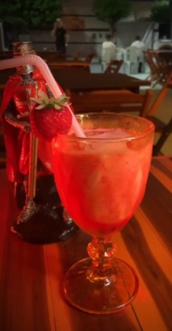 SORVETE DE MORANGO, LEITE, COBERTURA DE MORANGO,MORANGOS.